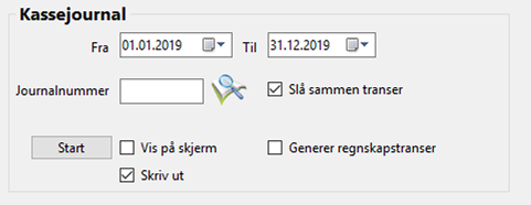 Dersom regnskapsfører likevel etterspør en samlet rapport for et helt år (for eksempel fjoråret), kan dere lage en samlet oversikt ved å skrive ut kopi av journalene for ønsket periode.